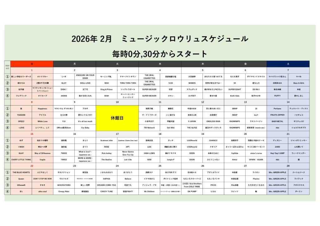 2月ミュージックロウリュスケジュール